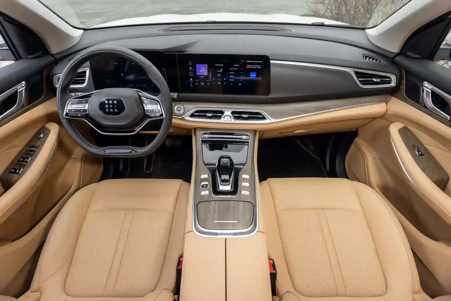 Салон особым дизайнерским эксклюзивом, вроде как, не цепляет, но в нём всё на своих местах, чинно и лаконично. Информационно-развлекательная система Huawei HiCar выдаёт информацию через тачскрин диагональю 12,3 дюйма: графика неплохая, без бликов, быстродействие среднее, зато есть встроенная навигация, раздача Интернета и поддержка Apple CarPlay и Android Auto. Добавим функцию беспроводной зарядки смартфонов и «музыку» с 12-ю динамиками. К счастью, климатическая система настраивается более привычными физическими кнопками.